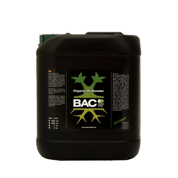 PK Booster de B.A.C. Organic es un potenciador de floración 100% orgánico que contiene una alta concentración de Fósforo y Potasio que las plantas de marihuana emplearán en la formación de las flores más grandes y resinosas.