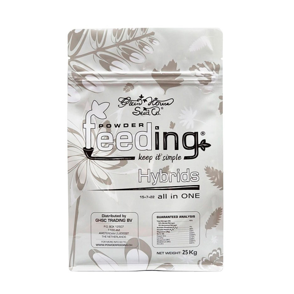 Powder feeding – Plantas Híbridas (Hybrid) es una auténtica novedad en el mundo de los nutrientes por varias razones, ya que se presenta en polvo en vez de en líquido, combina en un solo producto todo lo necesario para el crecimiento y la floración y además está formulado especificamente para ser utilizado en plantas híbridas.