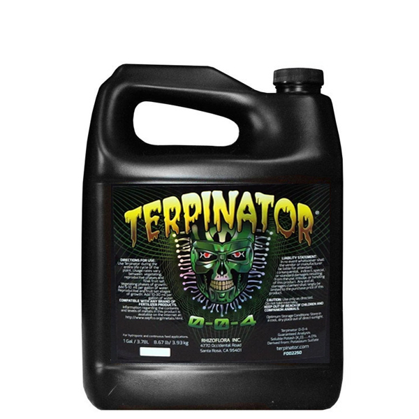 Terpinator de Green Planet es un espectacular estimulador de floración que ha sido elaborado a partir de extractos naturales cuya misión es la de conseguir una aumento de la producción de aceites esenciales y terpenos en nuestros cultivos de marihuana. El papel de los terpenos en nuestros cultivos es fundamental ya que son unas moléculas que se encuentran en la resina de los cogollos y son las que proporcionan a cada variedad de marihuana su color y su aroma característico. Estas moléculas intervienen directamente en el efecto de nuestros cogollos y le proporcionan mucha más potencia. Y es que existen más de un centenar de terpenos con características diferentes, sobre todo en las variedades de marihuana con propiedades terapéuticas que podemos utilizar como anti inflamatorios, analgésicos, relajantes y antibióticos entre otras muchas propiedades más. Este aditivo actúa directamente en el desarrollo de nuestras plantas de marihuana ya que aporta todos los elementos imprescindibles para conseguir una mayor formación de terpenos y aceites esenciales utilizando únicamente materias primas naturales. Los laboratorios de Green Planet han desarrollado este producto a través del estudio de algunas plantas que contienen estos terpenos o elementos aromáticos que generan un gran número de aromas que han sido utilizados con éxito en sesiones de aromaterapia. Si queremos conseguir unas cosechas de máxima calidad con unos cogollos mucho más resinosos, potentes y con unas fragancias y sabores exquisitos, tendremos que combinar Terpinator con los abonos de nutrición básicos y con el resto de aditivos de Green Planet, aunque también funciona a la perfección con los abonos y aditivos de otras marcas o fabricantes. Podremos utilizar este producto y sacar el máximo sabor y aroma a nuestras cosechas de marihuana en todo tipo de cultivos ya sea en sustrato de tierra, de coco, en cultivos hidropónicos o en cultivos aeropónicos. Funciones y características de Terpinator de Green Planet (1 L): – Aumentamos el nivel de terpenos dentro de nuestras plantas de marihuana – Potenciamos el aroma de nuestros cogollos, incluso después del secado – Conseguimos un sabor más delicioso de nuestros cogollos – Se incrementa la producción de aceites esenciales – Elaborado a partir de las materias primas más puras, totalmente naturales – Ideal para todo tipo de cultivos (tierra, coco, hidroponía y aeropónia) Composición de Terpinator de Green Planet (1 L): – NPK 0-0-4 – Nitrógeno 0% – Fósforo 0% – Potasio 4% Dosificación de Terpinator de Green Planet (1 L): – Mover muy bien el producto antes de su aplicación – Se puede utilizar tanto en el periodo de crecimiento como en el de floración – Tendremos que aplicar una dosis de 1.5 a 2.5 ml por cada litro de agua en la etapa de crecimiento – En el periodo de floración donde hay que hacer más hincapié con este producto tendremos que añadir una dosis de 2.5 a 7.5 ml por cada litro de agua de riego – Utilizar medidores de PH y de EC en nuestros medios de cultivo para conseguir los mejores resultados posibles en nuestras cosechas